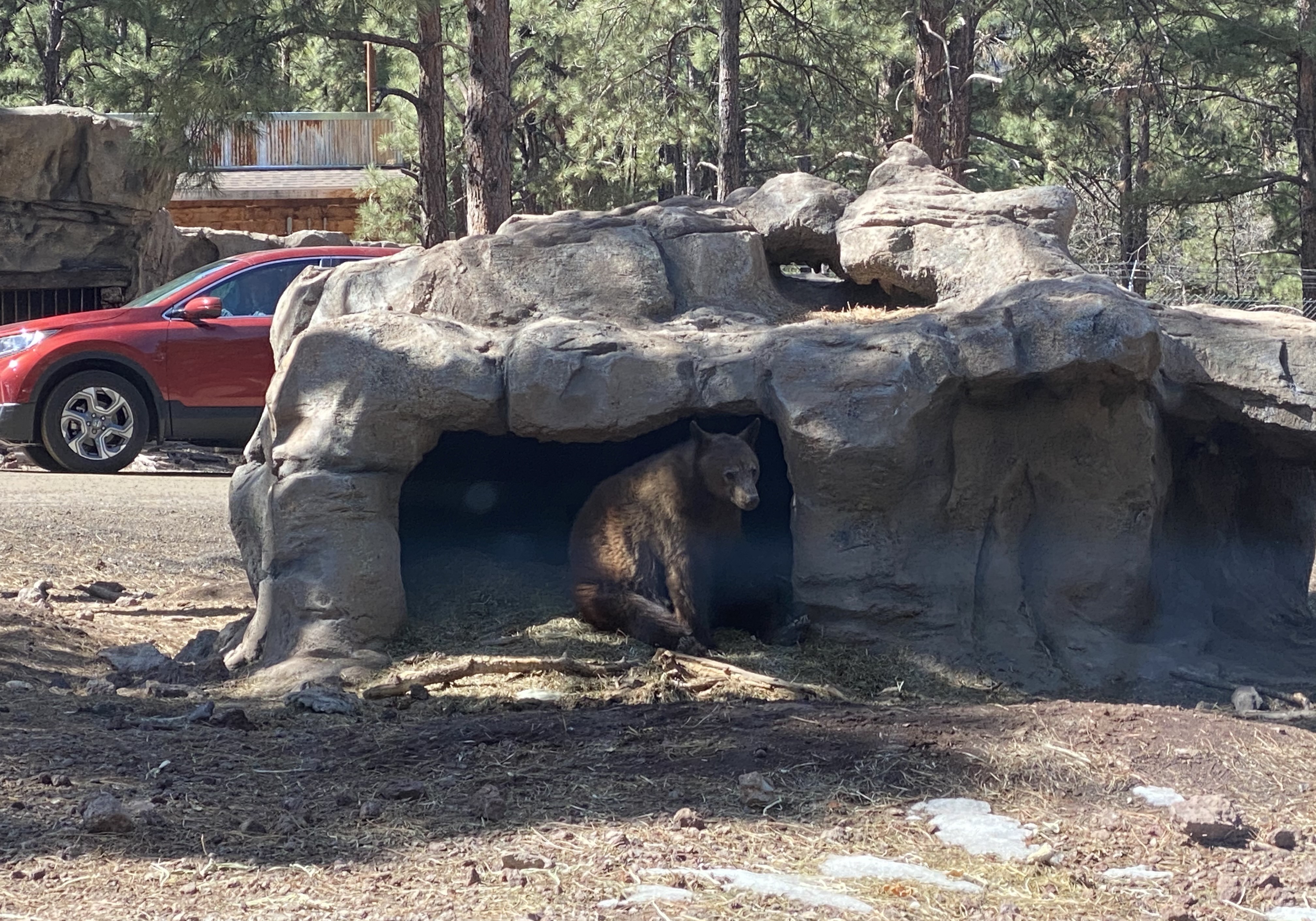 I crashed almost immediately after hitting Flagstaff, but woke up refreshed, ready to make things happen. Unfortunately, the Lowell Observatory was closed, so instead, I decided to backtrack maybe 25 minutes to visit “Bearizona” a wildlife – well, not really sure if it’s a preserve or what, but the gist of it is you can drive around through the park and see wild animals, including wolves and bears and bison and whatnot.