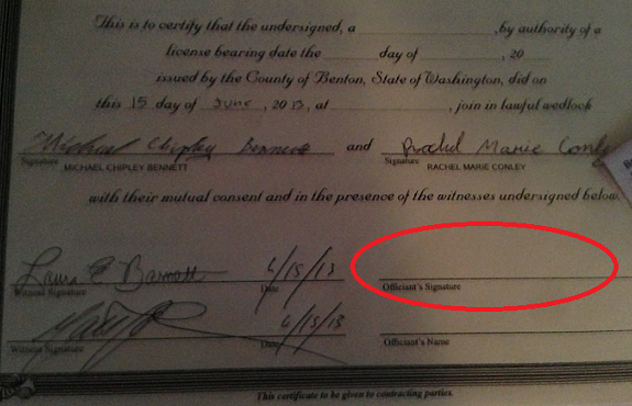 Which meant that, despite being officially pronounced man and wife, at the end of their first night together the bride and groom were still not legally married.