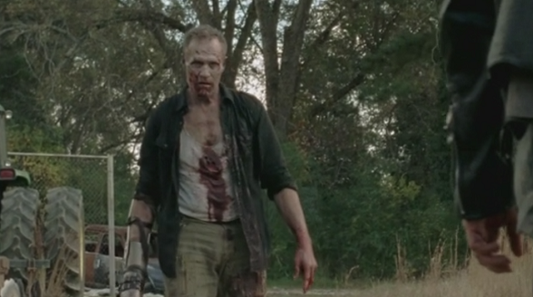 Well, I guess that isn’t really fair. Glenn and Maggie are outside in an elevated position with clear lines of sight and a couple automatic rifles, and as a bunch of terrified, confused idiots run outside screaming in terror without using cover, they successfully manage to open fire and not hit a single person. They also get an opportunity to take out the Governor and whiff on that as well. At this point, we can all pretty much count on Glenn and Maggie to fuck up whatever it is they are doing, but it seems like it takes actual talent to suck this much. You’d think they’d choose someone who’s a good shot, like Daryl. You know, the person who should have a pretty personal grudge against the Governor who just murdered his brother? Have you forgotten what just happened last episode when Daryl found his brother with a gaping gunshot wound in his chest?